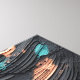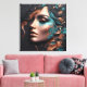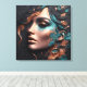 It is a captivating portrait of a beautiful woman. Set against a charcoal background, the abstract artwork showcases a blend of copper and turquoise hues, gracefully embossed to highlight perfect facial contours. Experience the mesmerising beauty of this unique composition