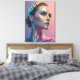 A futuristic portrait of a woman reimagined through geometric abstraction and neon tones. This elegant and powerful wall art adds a bold modern aesthetic to any interior.