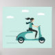 A woman speeding along on a scooter. This design looks really effective on these Poster
