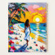 Add a touch of tropical beach to your organisational space with this gorgeous colourful personalised planner. A beautiful ai illustration done in an oil painting impasto style. A woman walking on the beach among palm trees, tropical flowers, turquoise waves, sea glass and seashells.