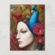Woman, Peacock, Red flowers and heart Postcard