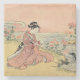 Woman picking chrysanthemums along the banks of a stream. Vintage Japanese print by Suzuki Harunobu.