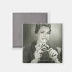 Smiling woman holding playing cards in studio, (B&W), portrait | George Marks | AssetID: 57520357