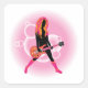 Each sticker showcases a dynamic illustration of a woman exuding confidence as she strums her guitar amidst a backdrop of bold pink and black hues. Crafted with meticulous attention to detail, the design captures the energy and passion of live music performances, making it an instant conversation starter wherever you go.