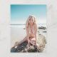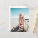 Woman Posing On Beach Rock In White Bikini Holiday Postcard