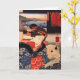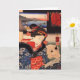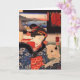 Utagawa Kuniyoshi (1797 – 1861) was one of the leading Ukiyo-e artists of the late Edo period in 19th century Japan. Among his favourite subjects were cats. This greeeting card illustration features a woman in a traditional kimono engrossed in what she is reading. Her pet cat is curled up beside her, keeping her company. In the background is a vista of fishermen bringing home their catch.