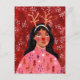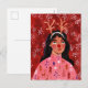 Woman red Christmas festive reindeer Holiday Postcard