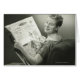 Woman sitting in armchair, reading newspaper, smiling, (B&W) | George Marks | AssetID: 57539557