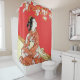 Reproduction of an ancient Japanese woodblock design by Rockett Graphics. This shower curtain's background colour (red is shown) is customisable.