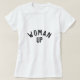 WOMAN UP is a classic feminist t-shirt, with black text on a white shirt. Whatever the situation, just woman up and face it!