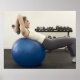 AssetID: 95466926 / {Tetra Images} / Woman using exercise ball and hand weights