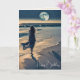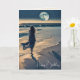Woman in a dress walking a beach at night under a full moon for birthday.