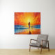 Woman walking ocean beach warm sunset tapestry