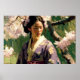 Woman Walking Under Cherry Trees on a Sunny Day Poster