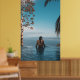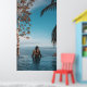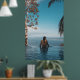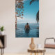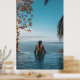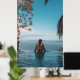 Woman wearing black bikini tap swimming on body of poster