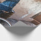Woman wearing blue denim jacket and shorts riding wrapping paper