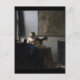Woman with a Lute by Johannes Vermeer, oil on canvas 1663, depicts a lady strumming a musical instrument in a lush interior of the painter’s home and studio. Natural light from a window shines across the subject and the wall map of the Netherlands in the background, with the foreground forms of table and chair in deep shadow. The painting’s realism, attention to detail, and jewel-like colours epitomise Vermeer’s prominence among the Dutch “Little Masters” of the 17th century Baroque era.