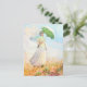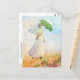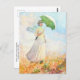 A fine art postcard with the painting, Woman with a Parasol Facing Right (also known as Study of a Figure Outdoors, Facing Right) (1886) by Claude Monet (1840-1926) who was a French Impressionist painter. A portrait of a woman holding a green parasol standing in a spring meadow with a brilliant blue sky.