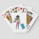 Introducing our "Wanderlust Queen" Playing Cards with a captivating graphic featuring a stylish woman pulling a vibrant blue suitcase. This unique design is a celebration of travel, adventure, and the thrill of exploration.