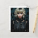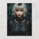 A woman with blonde hair in a black dress with black beads behind her a party selfie AI generated art
