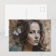 Woman With Butterflies Mixed Media Postcard