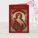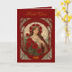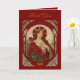 A graceful woman stands at the center of a richly decorative, Art Nouveau–style frame, surrounded by cascading red roses and ornate filigree. An arched ribbon above reads “Saint Valentine’s,” lending a vintage, devotional tone. A romantic, vintage aesthetic.