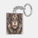 Woman with Elaborate Tribal-Inspired Ornamentation Key Ring