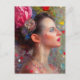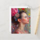 Woman With Flowers and Hearts Postcard