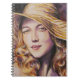 Woman with hat spiral notebook
