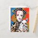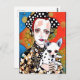 a woman holds her adorable spotted toy dog colourful AI generated art