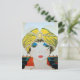 Vibrant ,classy French Art Deco high fashion illustration. Portrait of a beautiful young elegant lady wearing a yellow oriental hat with feathers in black white ,yellow ,blue red colours .Cool ,modern and artistic design.