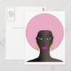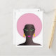 Woman With Pink Afro and Green Eyes Abstract Art Postcard