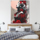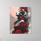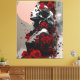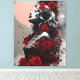A gorgeous woman with red roses AI generated painting in minimal colours of red,black,grey, and a hint of pink.