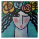 My colourful abstract painting of a woman with roses in her hair printed on ceramic tile