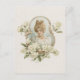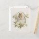 The vintage image of a girl framed with white roses harkens back to the days of tea in the parlour, courting, castles in the sky and romance. This reminder of simple beauty graces the front of these postcards to bring charm and elegance to your greeting, invitation, or thank you.