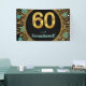 Woman's 60th birthday party banner with teal blue and gold dots and starburst with beautiful gold numbers and black background. You can add the text of your choice to personalise this pretty teal blue and gold birthday party banner.