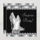 Elegant glitter high heel shoes and diamonds womans surprise birthday party invitation. This beautiful black and white surprise party invitation is easily customised for your event by adding your event details, font style, font size & colour, and wording.