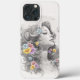 This is a beautiful iPhone case featuring the profile of a woman's face in muted tones and coloured flowers in her hair. The design has a very light textured overlay which gives the case and design a slight textured effect and vintage feeling.