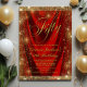 Womans red and gold 50th birthday party invitation with elegant "Fifty" script (cannot be changed) on a red satin and gold glitter background. This red and gold 50th birthday invitation is easily customised with your event details. Need a different year? Simple send us a message.