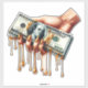womans hand holding 100 dollar bills dripping liquid gold money cash art large sticker