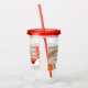 Womans hand pushing on alarm clock snooze button acrylic tumbler