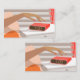 Womans hand pushing on alarm clock snooze button card