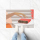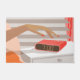 Womans hand pushing on alarm clock snooze button doormat