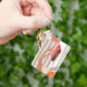 Womans hand pushing on alarm clock snooze button key ring