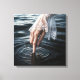 A delicate hand adorned with lace gently dips a finger into dark water creating subtle water ripples
