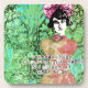 Womans Mind Digital Collage Green Background Coaster
