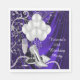 Womans purple and silver birthday party paper napkins with beautiful silver glitter shoes on a pretty purple satin balloon, pearls and champagne swirl background. You can add your own text, and you can remove the champagne glass.