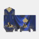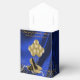 Womans birthday party favour boxes with elegant gold glitter high heel shoes, pretty string of pearls on a rich royal blue satin and gold background. These elegant royal blue and gold birthday party favour boxes are easily customised by simply adding the text of your choice under the front flap in the font style and wording you prefer. This is a printed design with no real satin, glitter, etc.