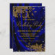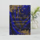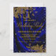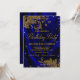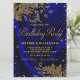 Womans royal blue and gold birthday party invitation with elegant gold glitter swirls on a beautiful royal blue satin background. This royal blue and gold birthday invitation is easily customised with your event details. The "Birthday Party" text cannot be changed.