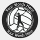 This custom sticker is decorated with the Woman's Volleyball seal customised with a choice of words above and below that allow you to personalise it with the name of a person, place, position, etc.